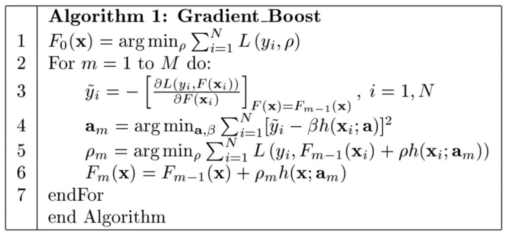 $$\rho_m = \arg \min_{p} \sum_{i=1}^{N} L(y_i, F_{m-1}(x_i) + \rho h(x_i;a_m))$$