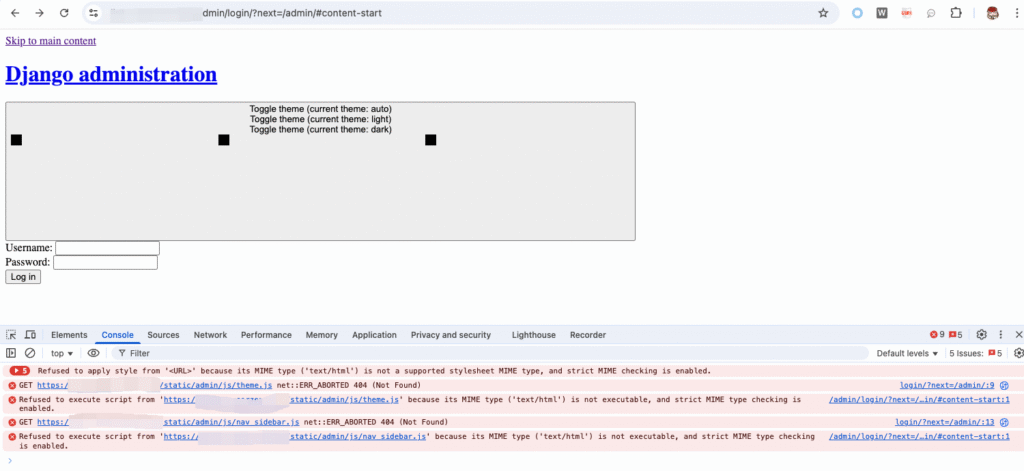 登陆一个Django服务器的admin页面的时候出现如下错误: